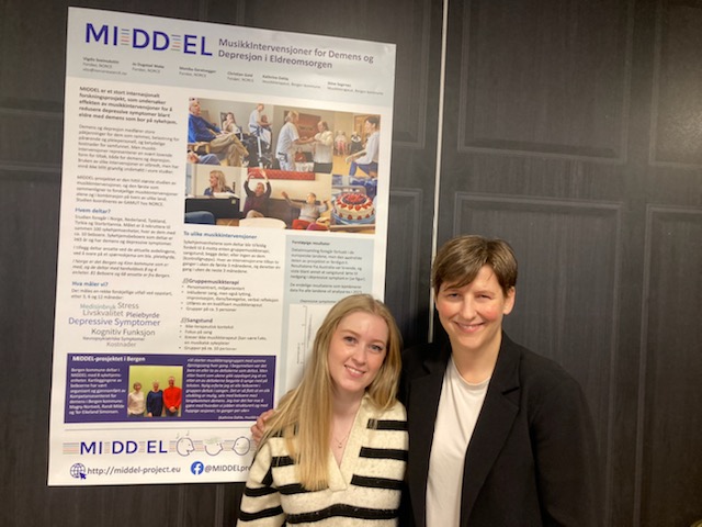 Poster presentation "MIDDEL - MusikkIntervensjoner for Demens og Depresjon i Eldreomsorgen" by Vigdis Sveinsdottir, Jo Dugstad Wake, Monika Geretsegger, Christian Gold, Kathrine Dahle, & Stine Sognnes