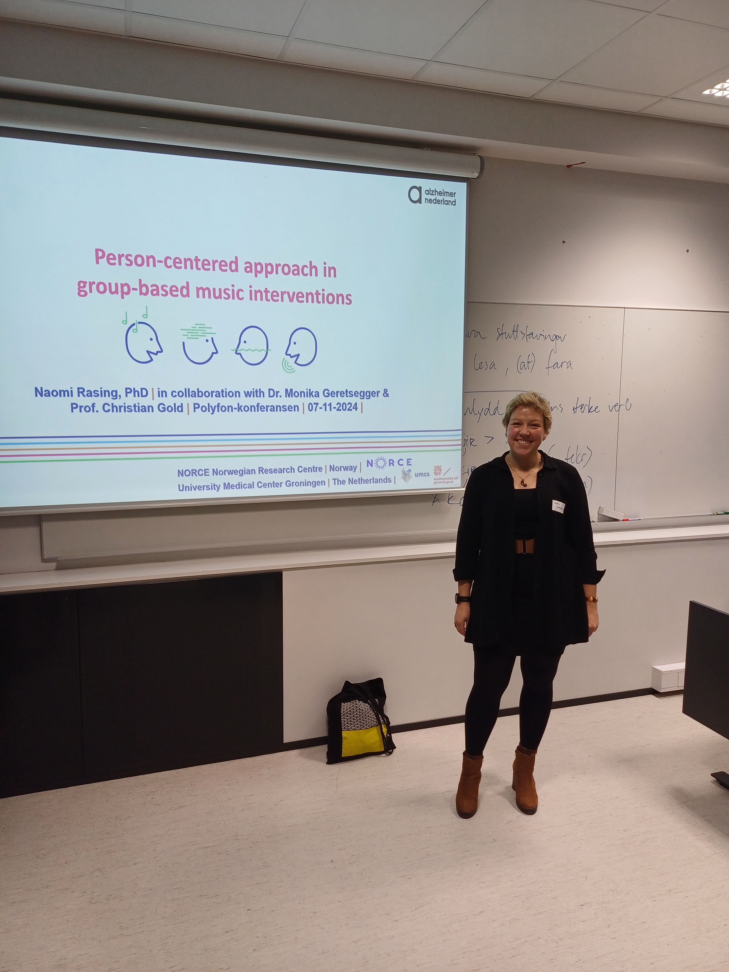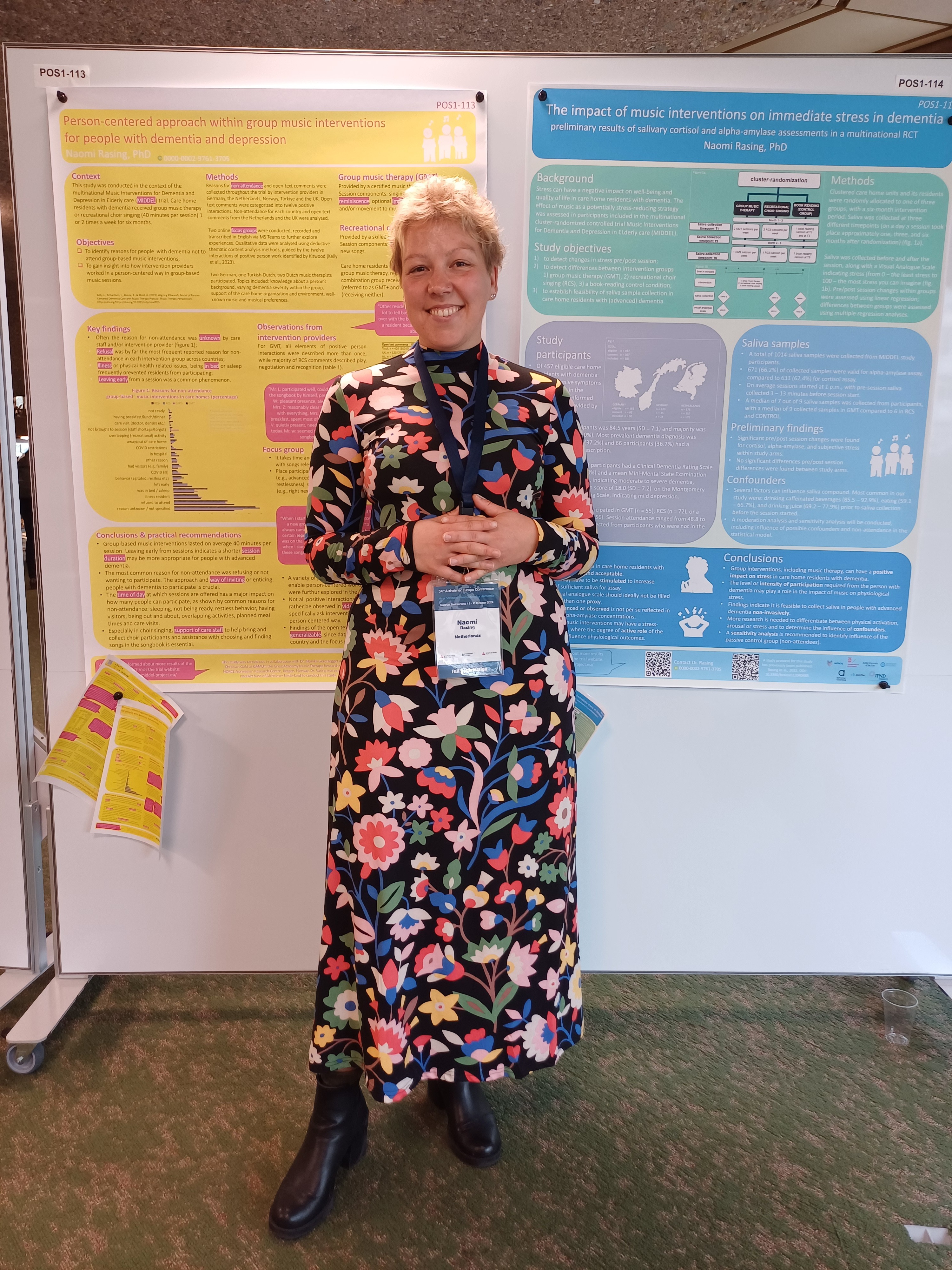 Poster presentations "The impact of music interventions on immediate stress in dementia" and "Person-centered approach within group music interventions for people with dementia and depression" by Naomi Rasing
