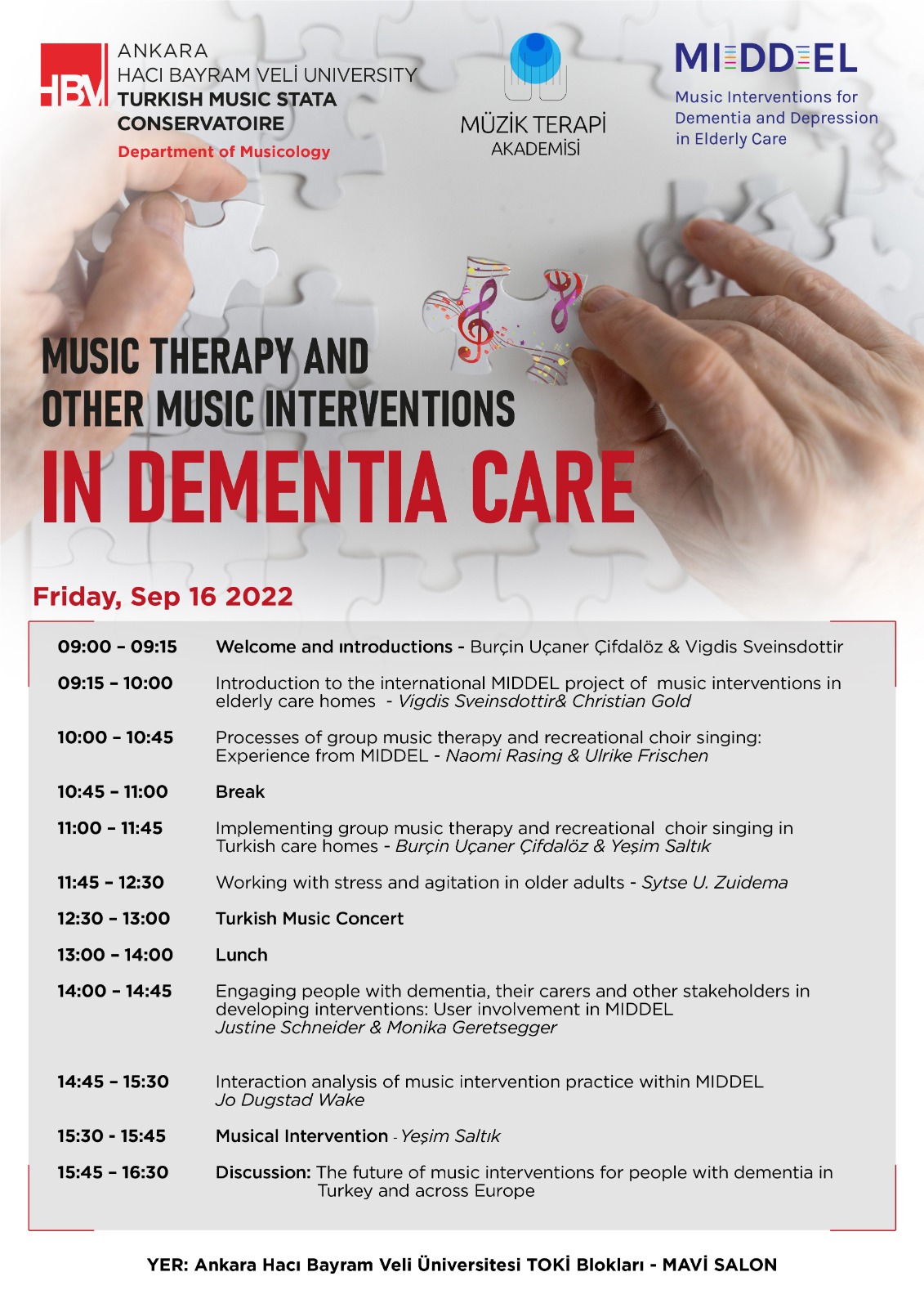 Music therapy and other music interventions in dementia care: Public seminar | Ankara, Türkiye