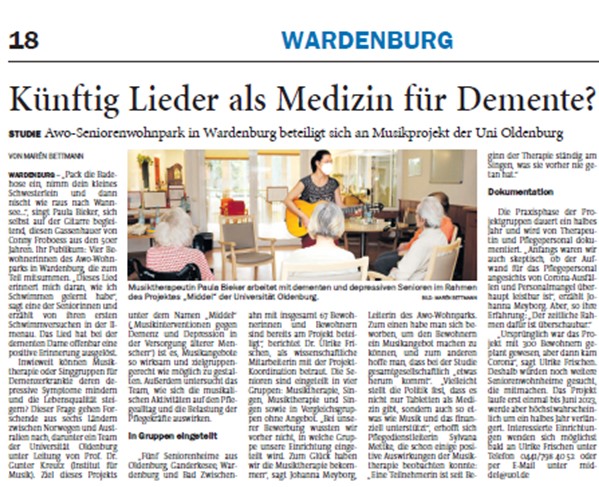 Musik löst vielfältige Gefühle aus, weckt Erinnerungen und ist ein wichtiger Teil in den Biographien vieler Menschen. Emotionale und kognitive Wirkungen entfalten sich auch bei Menschen mit Demenzerkrankungen besonders dann, wenn sie sich in musikalische Aktivitäten eingebunden fühlen. MIDDEL ist ein Projekt, das darauf zielt, die Wirksamkeiten musikalischer Interventionen zu überprüfen und Menschen mit Demenz dadurch zu mehr Lebensqualität zu verhelfen.